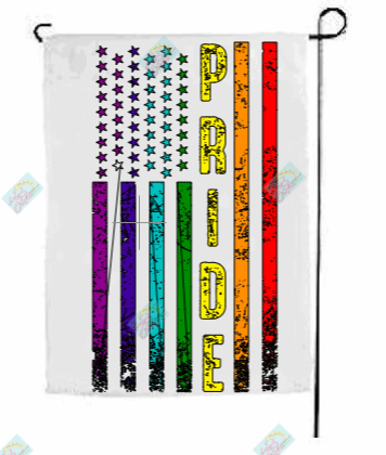 Celebrating Pride with a garden flag (12x18). The flag can hanged from your car or a garden flag pole.